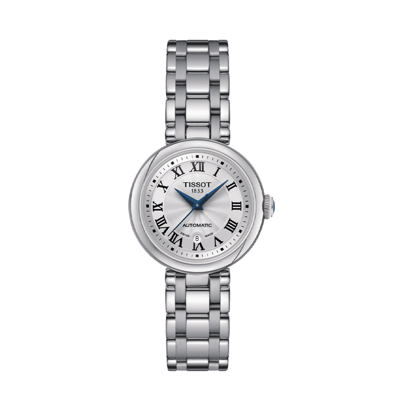 TISSOT BELLISSIMA mouvement automatique, boitier 29 mm en acier sur bacelet acier