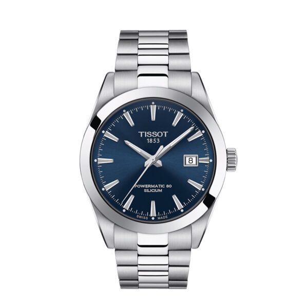 TISSOT GENTLEMAN POWERMATIC 80 SILICIUM mouvement automatique, boitier 40 mm en acier, cadran bleu, date à 3h, sur bracelet acier